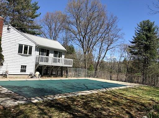 Looking for space? This home has it! Two separate additions increase 1st flr living space to 1600+ sf w/add'l 600 sf on the LL. Brand new 4 BR septic system is being installed allowing 4th BR on LL. Master BR is a large front to back w/high ceilings, fits king size furniture w/ease. Two other BR's also have great space. The main living area is open & spacious, from the LR into the dining area and 1st floor FR w/vaulted wood ceiling, wood stove and sliders leading out to a wrap around balcony. Nice kitchen layout w/peninsula for bar stools. A 2nd FR w/gas FP, study or 4th BR, & full bath w/shower stall is perfect private space for overnight guests/in-laws or young adults on LL. Other features incl: hdwd floors, all new carpets, new gas stove, 2C Gar w/front & back entry, fenced in IG pool w/screened in cabana like area & beautiful, large private backyd. Location!! Steps to Holliston's Rail Trail, minutes to highway & shopping and abuts conservation land. Peace & quiet with convenience.