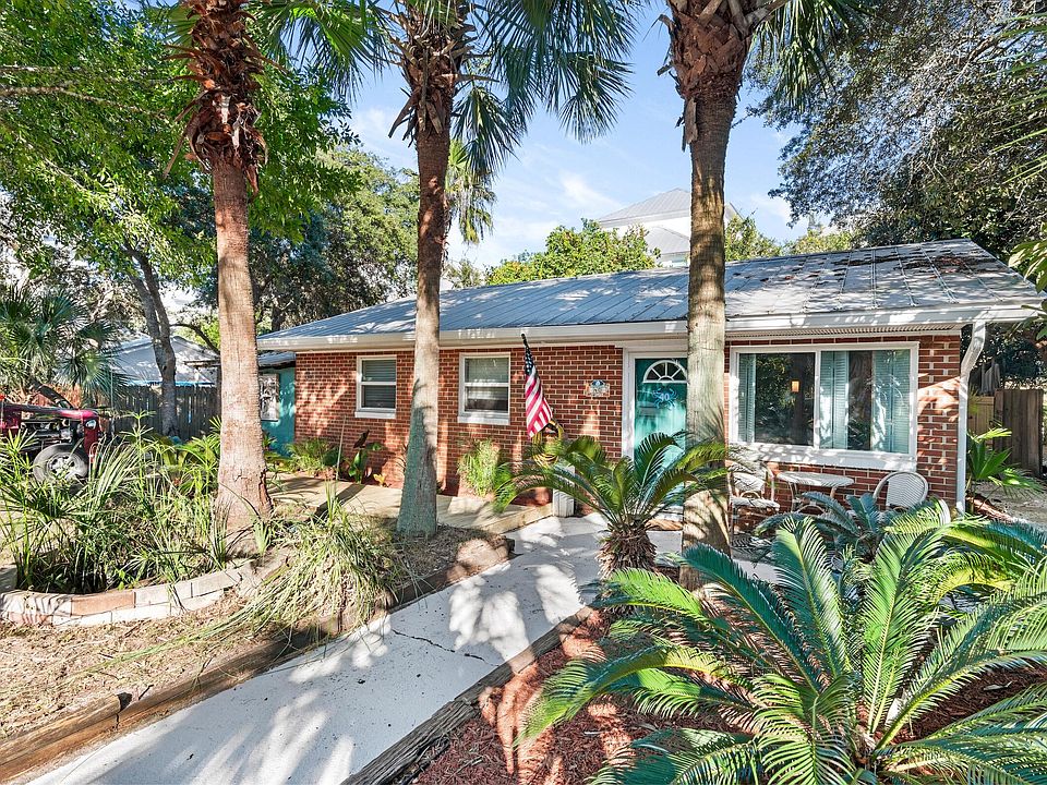 The primary bedroom has enough room for a king bed and features an ensuite half bath with partially tiled walls, wood accent wall and a pedestal sink. There is a shared full bathroom with tiled shower and custom epoxy vanity and updated lighting. There are two guest bedrooms each with crown molding. Head to the backyard off the kitchen and enjoy plentiful areas to unwind and relax in. Back porch is covered with a metal roof along with the amazing screened-in "she shed," the perfect spot to relax and snuggle up with a good book. The extra half lot allows for fantastic outdoor living and entices you to take more time for outside enjoyment and that beach lifestyle everyone desires. The charm of the unique outdoor nooks truly cannot be replicated! This will make a great full time residence or second home as the community is laid back with no HOA fees. There is also great potential as a rental property as similar properties in the area have done as high as $100k in annual income! The vicinity to the beach and exceptional dining & entertainment options nearby makes this a prime investment and one of the best values for 30A overall.