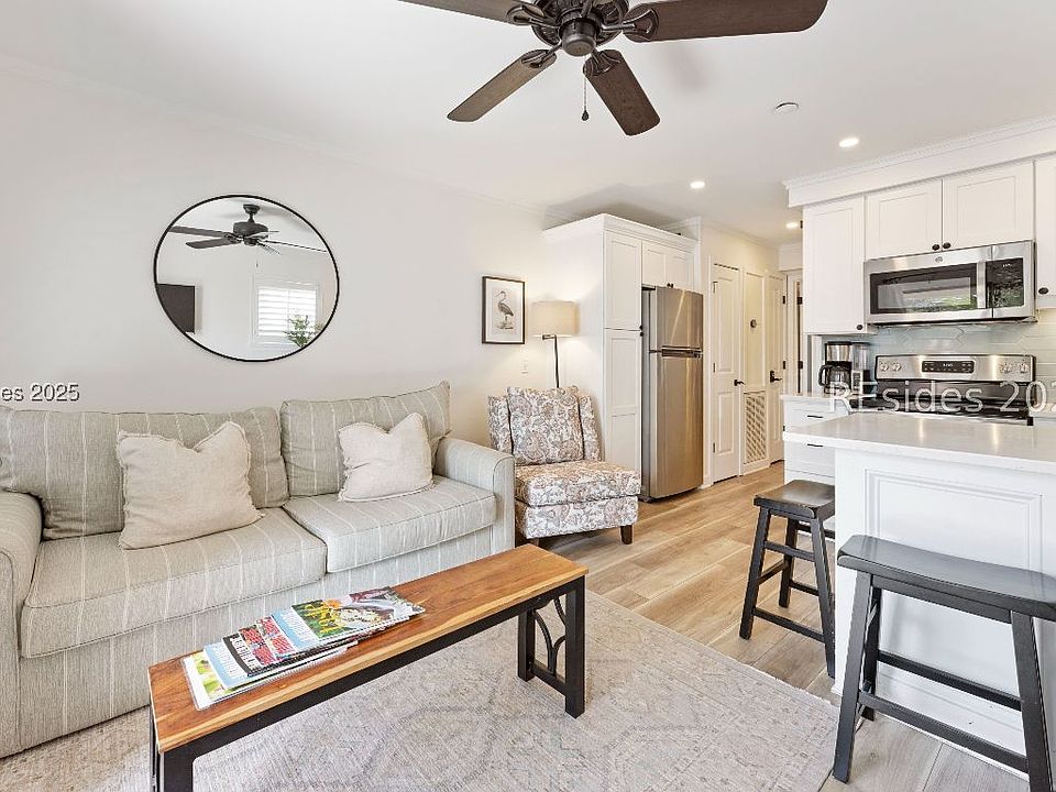 Escape to your dream beach retreat in this beautifully remodeled 1-bedroom, 1-bath ocean-view end-unit condo in the Admiral's Row section of Hilton Head Beach and Tennis! Fully renovated in 2022, this accessible, turnkey gem features ramp access with no stairs required for entry, luxury vinyl plank (LVP) flooring, a modern kitchen with new appliances and layout, plantation shutters, and thoughtful upgrades throughout - see attached list for details. Fully furnished with a queen bed, sleeper sofa, hallway bunks, and a fully stocked kitchen, everything is ready for you to unpack and enjoy the beach just steps away. Perfect for short-term rentals (grossing $40,630 in 2024, $31,170 in 2025 YTD), a second home, or full-time living, this condo offers access to Hilton Head Beach and Tennis's exceptional amenities, including pools, tennis courts, and a vibrant community atmosphere. Beach toys and everything in unit is included, plus a $5,000 seller-provided closing cost incentive. Move in and embrace island life today!
