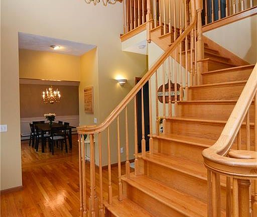 Young Colonial in Western Cranston on a dead end street and corner lot. Great yard with terrific privacy and a 22 x 48 patio off the kitchen. There is a two story entry foyer and this home has hardwoods throughout both levels, and beautiful inlays on the stairs and in the dining room which features a tray ceiling. Large kitchen with a center island, newer stainless appliances, a desk area, and a pantry closet. The 16 x 20 sunken family room has a gas fireplace and built-in book shelves from floor to ceiling on either side of the hearth. There is a 14 x 16 master with a large walk-in closet, en suite bath with a Jacuzzi tub & separate shower. The rest of the second floor consists of two generous bedrooms with ample closets, and a full bath with room for the washer and dryer. The lower level has a workshop with a stairway from the front hall and from the garage. The yard is beautifully landscaped and has complete coverage by the sprinkler system.