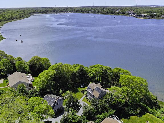 SIMPLY Spectacular! Contemporary 4BR Gambrel waterfront offers exquisite water views, private beach & open boating access to the Nauset Spit, & the Atlantic. Set atop a bluff in one of E. Orleans' most coveted neighborhoods, the handsome property is convenient to village amenities yet a coastal oasis unto itself. Residence & garage building have been artfully designed & meticulously crafted to offer every amenity. Understated yet luxurious, the main residence is light-filled & airy w/ rooms featuring near-floor-to-ceiling windows that capture sweeping water views from the head of the the Cove to Hopkins Island. The gourmet kitchen (2021) is sleek & contemporary with beautiful finishes, top-line appliances, & exceptional storage. Easy flowing living & dining areas offer wonderful water views and bring the outdoors in, opening to an elegant bluestone terrace for al fresco dining & entertaining, & spectacular sunsets. All 4 BRs are ensuite while the spacious 1st fl. family room, w/ extensive floor-to-ceiling built-ins & private 1/2 bath, can flexibly accommodate office, entertainment, & other uses. The detached high-bay garage (2017) hosts boat & buggies while the spacious guest suite above includes bath, kitchenette & gorgeous water views--indeed, a private, self-contained quarters for family & friends. Amenities include hardwood floors, Central A/C, irrigation, outdoor shower, on-demand hot water and much more to add to ease of living. A new energy-efficient heating system & whole-house solar panels create an eco-friendly environment generating an annual electricity surplus & more than enough capacity to charge EVs. This desirable E. Orleans neighborhood is 5 minutes to village centers, with easy access to fine restaurants, shopping, beaches & surrounding towns. Town Cove is a protected saltwater inlet that leads out to Nauset Beach & the Atlantic Ocean. Enjoy idyllic summer days beaching, boating, kayaking, & sailing, or simply enjoying the passing parade on the Cove. The property currently (and historically) has/had a private mooring; all inquiries about moorings should be directed to the Orleans harbormaster. 40 Gibson Road offers refined coastal living & a phenomenal location for an active waterfront lifestyle. (Note: owners are in residence; please respect their privacy and do not drive onto property.)