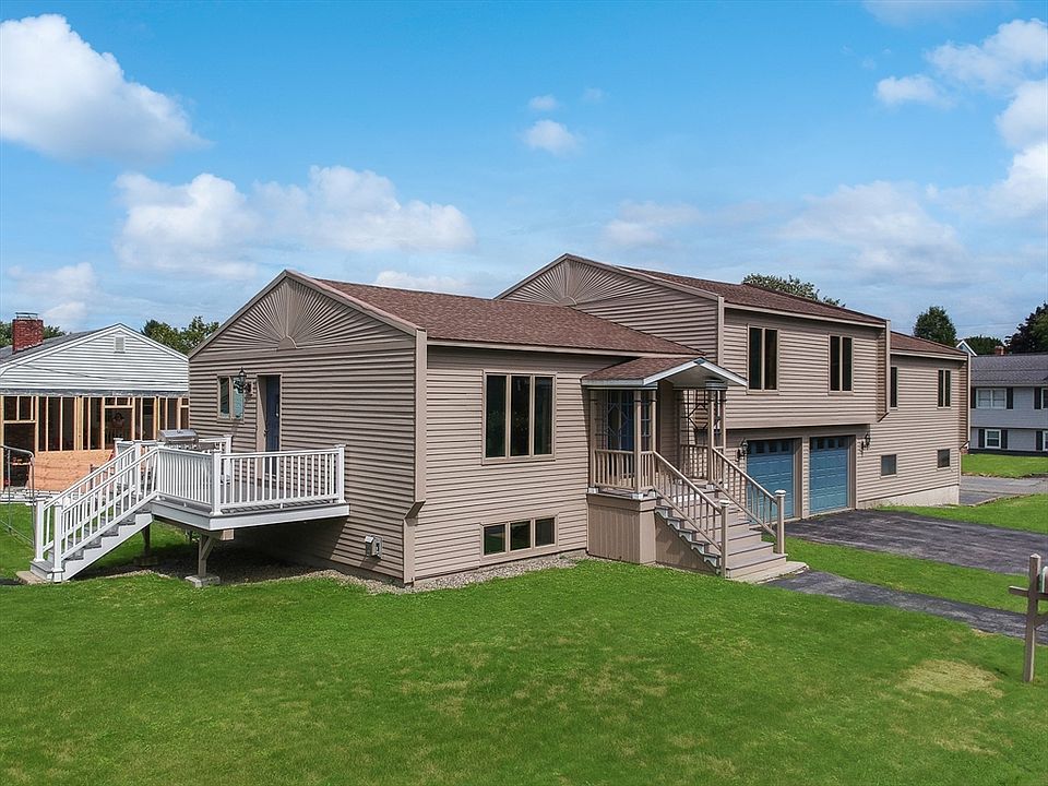 BOM DUE TO BUYERS FINANCING DEAFAULT JUST PRIOR TO CLOSING. This Spacious Tri-level has an open concept floor plan that sits on a nice corner lot in a quiet location convenient to everything.The main level features high ceilings, lots of hardwood flooring, bright formal dining and living rooms each with triple window, cabinet packed fully applianced kitchen with breakfast bar and exterior access to the newer deck and yard area with above ground pool. The spectacular main bedroom has cathedral ceiling,lots of windows including a large Pentagon window, 2 walk in closets & hardwood flooring.The 2nd and 3rd bedrooms are close by as well as a separate laundry room and full bath. The lower level has a cozy family room with corner heatilator gas fireplace, bonus space perfect for exercising plus a 4 man Jacuzzi for relaxing in, a conveniently located half bath completes this level. Plenty of parking, huge storage & work shop area with 3 garages, c/a, newer windows and roof.