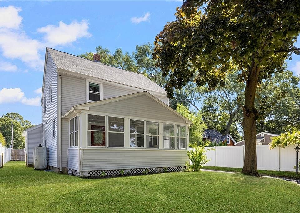 HIGHEST & BEST OFFERS DUE TUESDAY SEPTEMBER 10TH AT 10AM This charming colonial style home is nestled in a peaceful tree-lined neighborhood moments from the waterfront. Upon entry through the enclosed sunroom porch, you are welcomed into a foyer that transitions seamlessly into the open concept living and dining area. On the first floor you will also find the kitchen, half bathroom, and a first-floor bedroom. Upstairs discover the primary bedroom, guest bedroom and a full bathroom. This home is meticulously maintained and adorned with hardwood flooring throughout. Outside, enjoy a lovely private and fenced in yard complimented by a detached two-car garage. This property offers convenient proximity to shopping centers, restaurants, Marinas, approx. 10 min to downtown East Greenwich and nearby the TF Green International Airport.