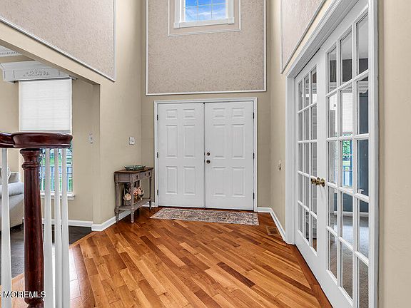 Your Dream Home is Here — and It's Even Better Than You Imagined! From the moment you arrive, the charming bed & breakfast-style front porch welcomes you in and sets the tone for a home that's full of warmth, character, and pride of ownership. This spacious 4 bed, 3.5 bath ''Manchester'' model — the second largest in the community — sits on a premium lot with picture-perfect views that truly make it stand out. Inside, you're greeted by a stunning two-story entryway, beautiful hardwood floors, elegant custom moldings, and thoughtfully chosen finishes that give every room a polished, yet comfortable feel. The layout is perfect for entertaining with a formal dining room and a spacious eat in kitchen with granite countertops and stainless steel appliances... Need space? You'll love the full finished walk-out basement featuring a home office, game room, gym, and a full bath the perfect setup for work, play, and everything in between. And just wait until you see the backyard! A custom covered porch and step-down deck overlook the serene Bass Run Pond, creating the perfect spot to relax, entertain, or simply enjoy the view. Commuters, take note you're just minutes from Route 9, NYC buses, I-195, plus great shopping and restaurants. This home really does have it all. Come see for yourself it might just be love at first sight!