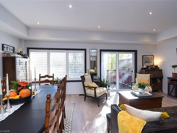 Discover this stunning executive townhome perfectly situated in the charming and vibrant community of Waterdown. With an unbeatable location, you’re just steps away from trendy shops, cozy cafés, restaurants, pubs and every convenience imaginable. Nature lovers will also appreciate being within walking distance of scenic trails and the breathtaking Smokey Hollow Waterfalls. Inside, this beautifully designed home features an open-concept main level complete with pot lighting, elegant granite countertops and luxury vinyl flooring. Step through the walkout to your spacious deck (with gas line for a BBQ) overlooking a tranquil ravine; the perfect backdrop for relaxing or entertaining. Upstairs, the primary bedroom offers a generous walk-in closet and a lovely ensuite, complemented by two additional bedrooms, a full main bath and the convenience of second-floor laundry. The bright, spacious basement with large windows is ready for your personal touch. Features the convenience of a car charger, easy access to the GO Train, Highways 407, 403 and 6, and just a short stroll to every amenity, this home truly has it all. Experience comfort, convenience and style — welcome home to St. Thomas Walk!