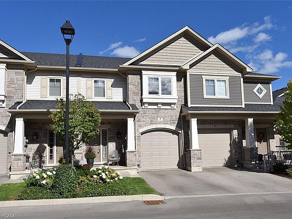 Welcome to this stylish townhome situated in an exclusive complex built by Chelten Homes. Perfectly located in the heart of Waterdown’s charming downtown core, this home offers both convenience and community. At the front entry, a beautifully landscaped garden and covered porch create an ideal spot to relax and unwind. Inside, the bright and spacious foyer opens to a stunning open-concept main floor featuring 9’ ceilings, modern dark hardwood, and a designer kitchen complete with granite countertops, island seating, and high-end appliances. The dining area opens through sliding doors to an inviting patio with a gorgeous oak tree – ideal for relaxing or entertaining. Upstairs, you’ll find three generous bedrooms filled with natural light. The king-sized primary suite includes a large walk-in closet and a sleek 3-piece ensuite with a large glass shower. Two additional bedrooms share a large 4-piece bath, ideal for family or guests. Custom window coverings throughout add both style and functionality. The unfinished lower level provides laundry facilities, abundant storage, and a rough-in for an additional bathroom, offering extended living space possibilities. The garage, with main hall entry, has been thoughtfully customized to optimize storage space. With its modern design, quality construction, and unbeatable location, this home is move-in ready and not to be missed!