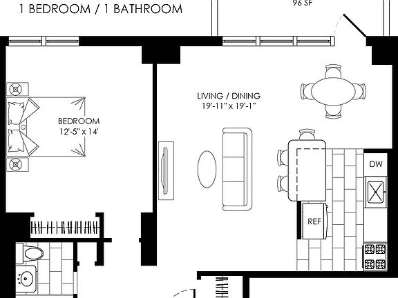 Oversized windowsModern bathroom finishesIn-unit washer and dryerStainless steel appliancesPrivate balconyGenerous closet spaceHardwood floors