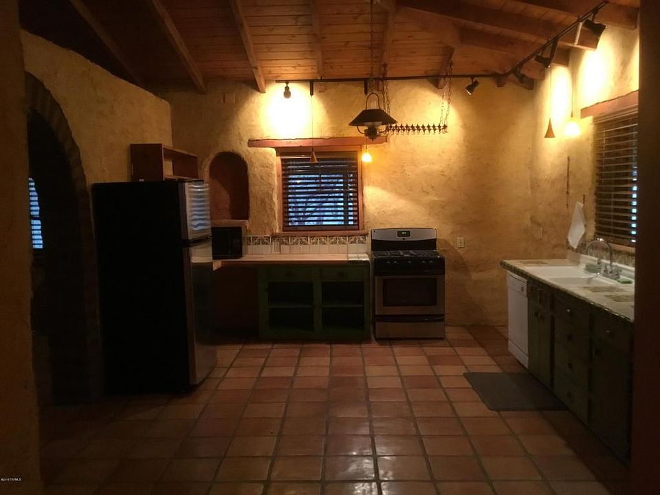Very private Custom unique Mud Adobe built home on the banks of Harshaw Creek.*14.68 dramatic wooded acres complete with sunset & mountain views.1 bedroom, 1 bath, Satillo tile floors, rustic wood ceilings, custom Mexican tiled accent kitchen with appliances.Enjoy the evenings on the screened in patio listening to the birds.Work shop with covered parking on the property.3 miles from Historic downtown Patagonia.Great vacation home!Room for horse & minutes to Coronado National Forest. Call for details.