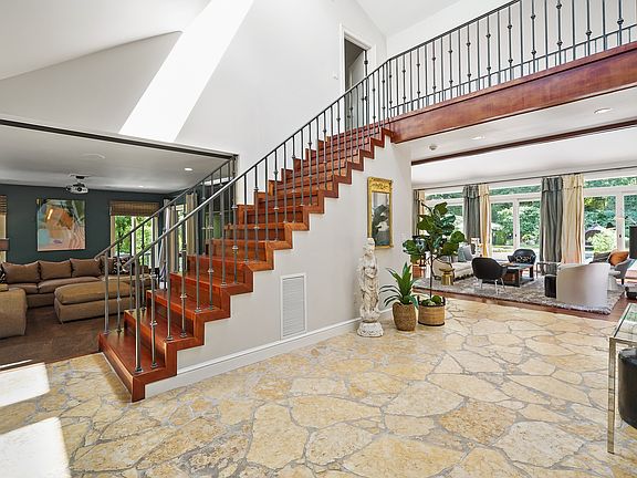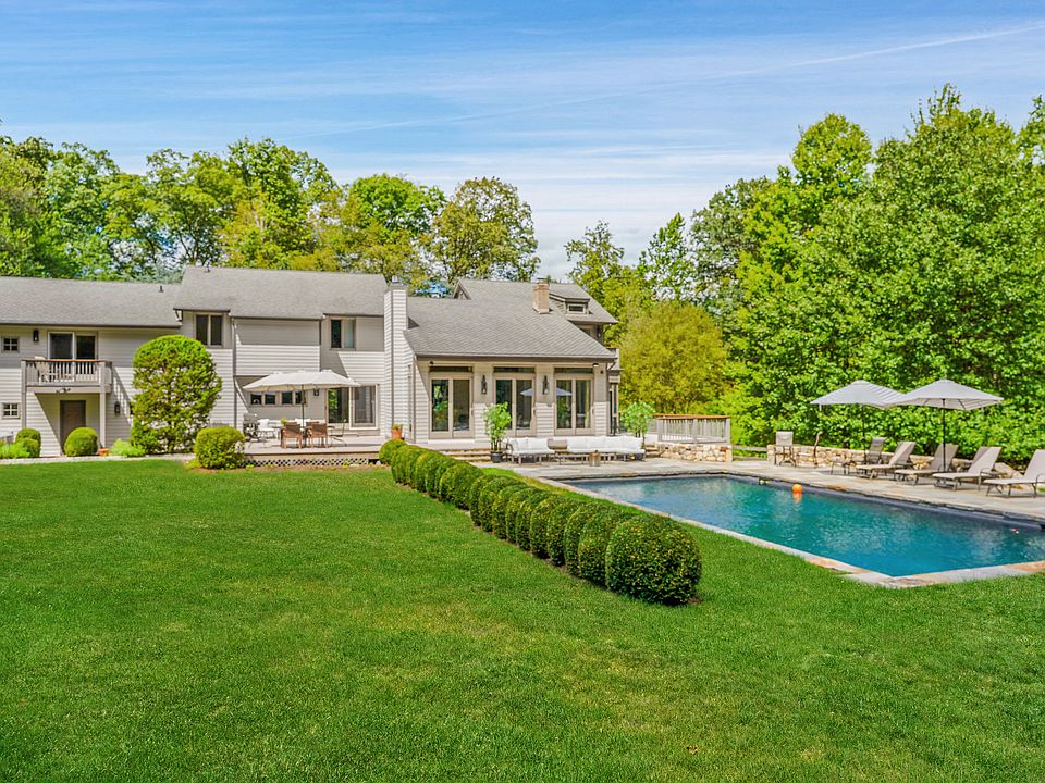 Set on more than two acres of exquisite, park-like property in the coveted Red Coat estate section of Westport, this spectacular modern home with a glorious gunite pool offers an ideal lifestyle. A designer's own residence, this home showcases uncompromising quality with intuitive features. The landscaped approach begins with a large stone parking court that accommodates entertaining on a grand scale. The dramatic entrance leads to a soaring foyer with custom stairs, where the sun-filled interiors begin to unfold and glimpses of the glorious rear property and pool come into view. The grand-scale Great Room w/gas fireplace has windows & doors on three sides, brining in light and views. The fam rm has a professional media system to bring your favorite shows and games to the big screen, and access to the serene screened-in porch. The gourmet kitchen has style and flair w/concrete center island, stone counters, Sub Zero & Viking appls, wet bar w/beverage chiller, lrg pantry, built-in desk, dining area & access to the deck. The dining room has a custom built-in server, 3D ceiling design & doors to a covered deck. The flexible 2nd level has 5 BRs incl a grand primary suite w/two balconies, excellent closet space & a luxe bth w/glass shower & spa tub. All baths have been updated. The apt/guest wing w/priv entry, 2 rms, kitchenette & laundry is ideal for multi-generational living or anyone seeking privacy. Finished walk-out LL w/rec & office spaces. Many new improvements. Generator.