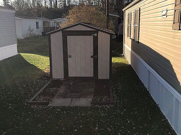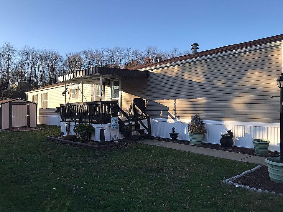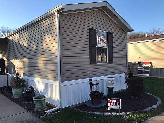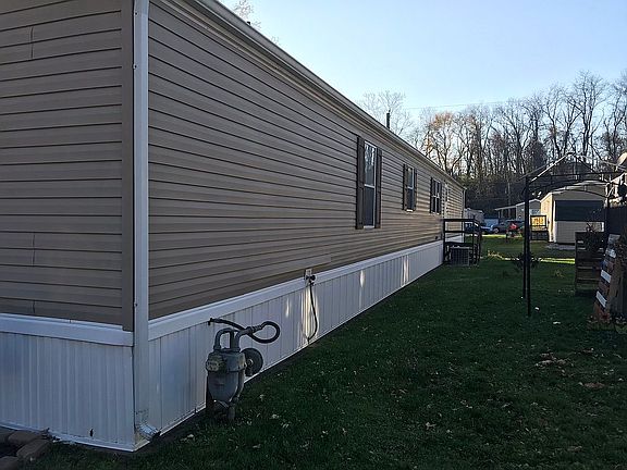 This well maintained move-in ready mobile home is located in South Park Mobile Home Community in Finleyville. 3 bedrooms, 2 full baths. nice corner desk included in one of the bedrooms to utilize as a great office space. Master bedroom has a large walk-in closet. Newer side by side fridge with ice and water hooked up, hot water tank - 2 years old. Large eat-in kitchen with lots of cabinet space. Washer and dryer included. Covered porch and large wooded shed which includes a built-in work bench and plenty of space for additional storage Please note, buyers must complete a credit application and pass a background/credit check by the property management separately prior to purchase of the home. Monthly Lot Fee + water and sewage billed by property management. All other utilities paid for by owner. Willing to discuss reasonable offer