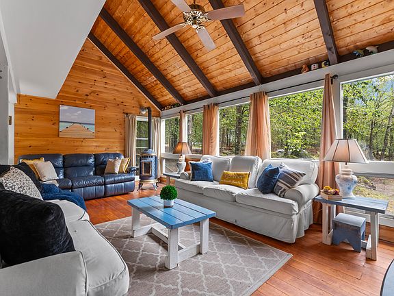 First time on the market in nearly 50 years! This classic 5-bedroom cottage on Frye Island has been loved by the same family for generations and is now ready for its next chapter. Perfectly situated across from the community center and tennis courts, the location couldn't be more central—just a short walk or golf cart ride to beaches, the golf course, and all the island amenities. The home itself is spacious and filled with potential. The bright and airy great room features large front windows that let in plenty of natural light, leading out to a generous deck and a cozy covered porch—ideal for relaxing or entertaining after a day on the lake. While the cottage currently offers one bath, the upstairs loft includes a closet that could easily be converted into a half bath, and the family has always envisioned adding an outdoor shower for that quintessential Maine summer feel.