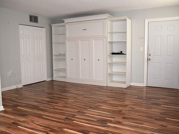 Easily accessible Ground Floor Corner unit at Plantation Villas, with Assigned Parking in front of unit. This one bedroom and one bath condo, has a large walk in closet, stackable washer & dryer and Murphy bed wall unit ready for your mattress! Complex amenities include a large pool and club house for your enjoyment. **Condo Association does have a tenant application/approval process. Tenant is responsible for utilities.
