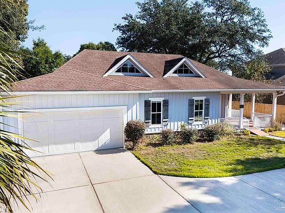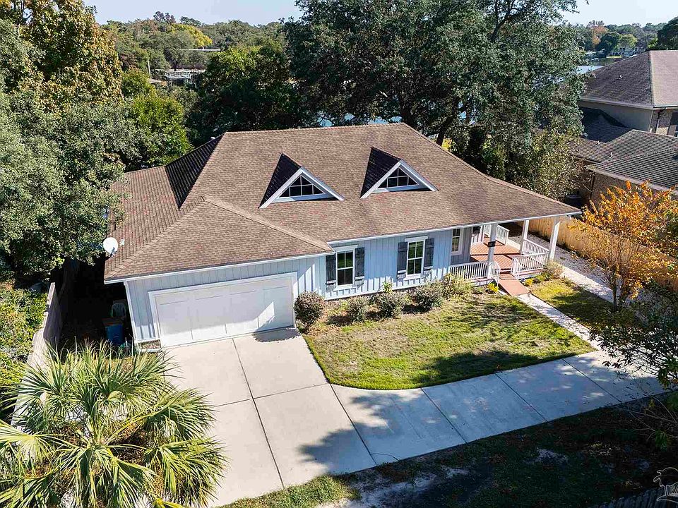 Nestled along the tranquil shoreline of Woodlawn Bayou, this exceptional residence is luxury coastal living in the prestigious enclave of Gulf Breeze Proper. Completed in 2012, the home blends timeless Southern architecture with refined modern craftsmanship, offering an elevated waterfront lifestyle framed by sweeping bayou vistas and the calming embrace of nature. A long, graceful drive leads to the property, where classic board-and-batten siding, gabled dormers, and a grand wraparound porch create an unforgettable first impression. Mature oaks drape the landscape, casting dappled light across the grounds and setting a serene tone from the moment you arrive. Inside, expansive walls of glass invite the outdoors in, showcasing panoramic water views from virtually every main living space. Natural light floods the interior, highlighting exquisite finishes and creating a seamless connection between indoor comfort and the breathtaking environment just beyond the windows. The rear porch spans nearly the entire length of the home, offering multiple areas for relaxation and elegant outdoor entertaining. Gentle breezes flow through the space as you overlook the private dock. This is your direct gateway to boating, paddleboarding, and sunset cruises along the bay. The property’s elevated positioning along the water provides both captivating scenery and an uncommon sense of privacy. Here, mornings begin with golden light rising over the bayou, and evenings end with vibrant coastal sunsets reflected on the water. Located minutes from elite schools, boutique dining, Pensacola Beach, and the cultural attractions of downtown Pensacola, this residence offers convenience without compromising seclusion. It is a rare sanctuary where luxury, craftsmanship, and waterfront tranquility converge.