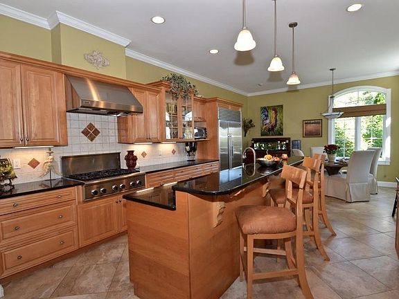 What a Masterpiece ! Grand scale custom 4BR, 3.5BA home with open floor plan, amazing 25' ceilings, gas FP, recessed lighting, HW floors, new paint, new carpet in every bedroom, gourmet kitchen with imported tile from Italy, two tiered island, 6 burner Thermador cooktop, double ovens, sub zero refrigerator, granite counters, tile back splash and walkin pantry/mudroom with individual cubbies for coats and shoes. First floor master suite has double gas fireplace, shower, jacuzzi tub and walk in closet. 2nd level has a bedroom w/private bath and add'l 2 bedrooms have jack & Jill bath. The three Season sunroom with over 350sf has stamped concrete flooring, ceiling fans and 6 Pella sliders that either open to the great room or to the 800+sf deck. The finished LL has over 1400sf of living area plus gym, workshop and endless storage. Beautiful flat open yard w/firepit and fruit trees for all to enjoy. This versatile home has central A/C, a 3 car garage and comes with a 1 year home warranty.