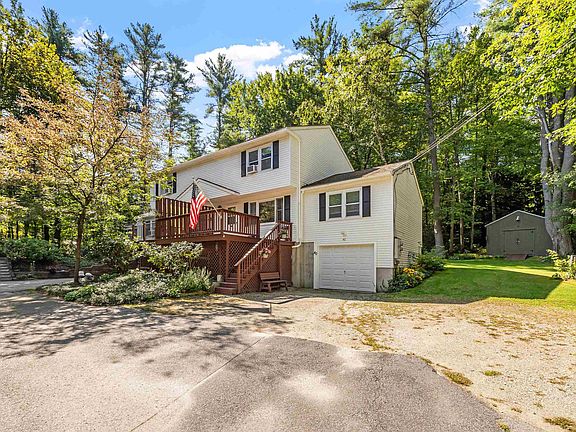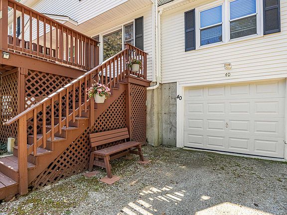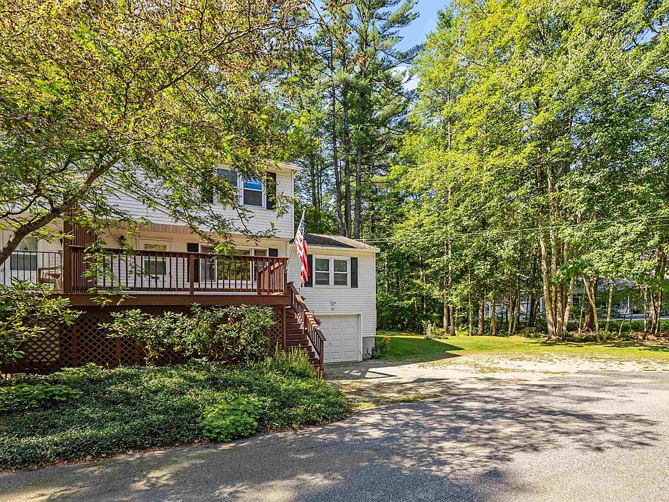 Loved by the same family for 20 years, this condex is set back from the road with a private drive, one car garage, front and rear decks, and a nicely landscaped yard with oversized shed. The first floor features a sunny kitchen adjacent to the living room, a half bath, and a large family room with vaulted ceilings. Upstairs are two generously sized bedrooms with a shared full bath. The lower level walks out to the garage & has an additional bonus space for an office, exercise room, etc. and storage. Newer appliances, replacement windows, window AC units & the washer/dryer will stay with the home, along with other extras including a generator hook up, as described in the disclosure. Great location just a mile from the new Market Basket shopping plaza and commuting access. This home is a gem! Shown by appointment only. NO CONDO FEE. Quick close possible.