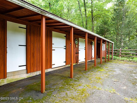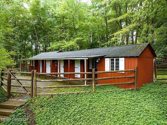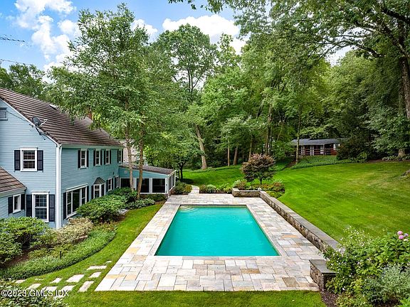 40 Howard Rd - a 4.4 acre estate offers endless possibilities for equestrian and outdoor recreational activities with a fabulous pool, horse stable with 3+ stalls, tack room and grazing paddock all enveloped by natural beauty and adjacent to Greenwich Riding Trails. Expertly maintained six-bedroom Colonial features wonderful separation of space in expansive floor plan with eat-in country kitchen, three-season screened-in porch, fireplaces in family room, wood-paneled den/office and living room; an impressive double height great room anchored by a commanding two-story brick fireplace with second story library and lower level billiard hall/game room with fireplace and wine cellar. With attached two-car garage, retractable cover on pool, updated mechanicals and 50-year composite roof.