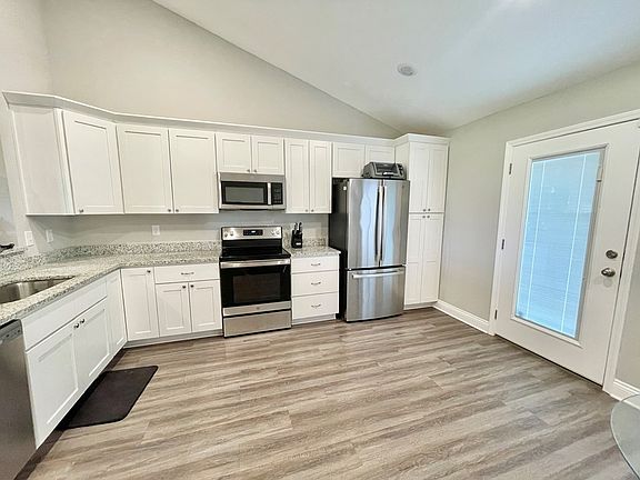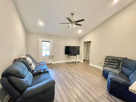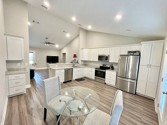 This is a very well kept 3 bedroom 2 bathroom home sitting on nearly an acre of land in the desirable Hunters Trace community. This home features an open and split floor plan, an oversized utility room, vinyl wood planks throughout and granite countertops. Each bedroom has tray ceilings and the living space with tall vaulted styled ceilings, giving extra character. The primary suite includes double vanities, a large walk in closet and a nice walk in tiled shower. Located in the county in a quiet neighborhood within PRC school district, just minutes to town. Don't miss this one!