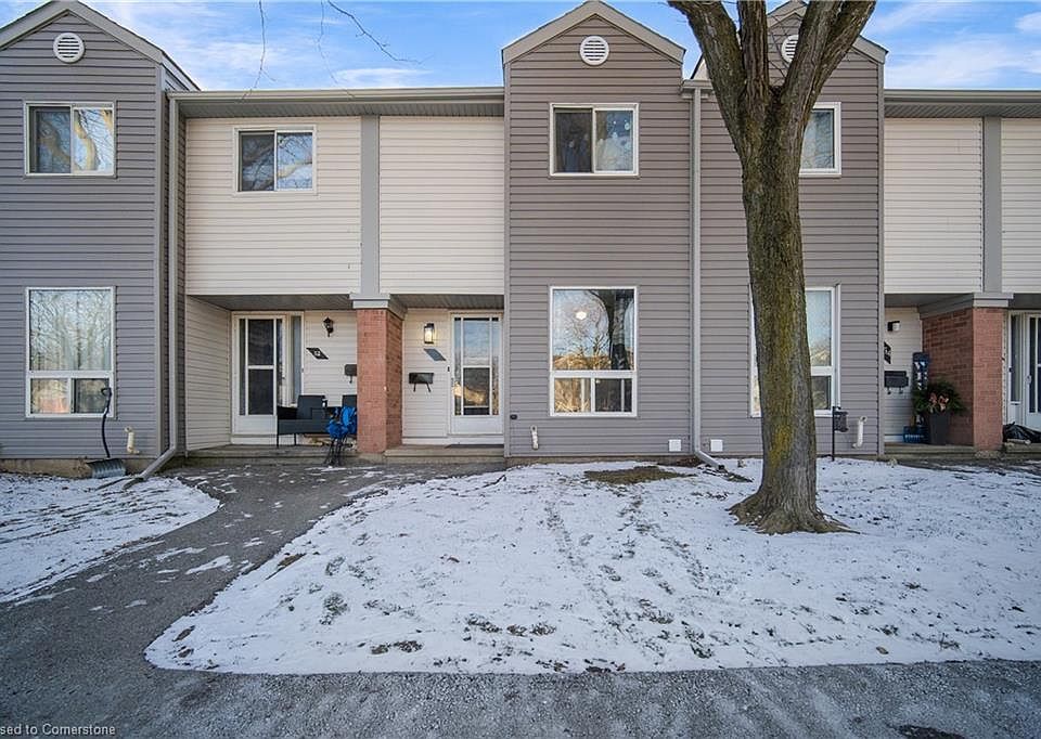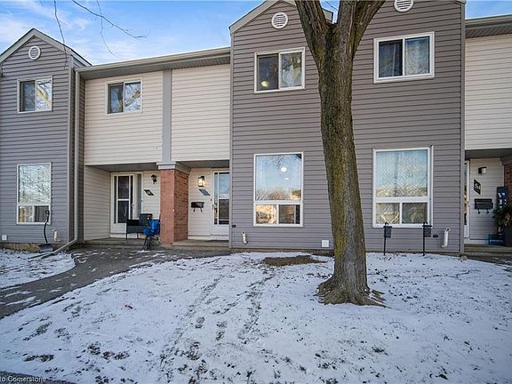 Stunning and fully renovated two-story townhome with a spacious, open-concept main floor featuring modern finishes. Ideal for first-time homebuyers or as an investment property. This home backs onto a serene green space, providing full privacy and a safe area for children to play. It boasts an open living area, a brand-new kitchen seamlessly connected to the dining room, and is situated in Guelph's west end. Conveniently located within walking distance of Costco, grocery stores, banks, a library, a community center, schools, and public transit. This Is A Freshly Painted, With Newer Kitchen, Newer Flooring And Finished Basement. Lovely Maintained Landscaping & Snow Removal Included In Maintenance Fees.