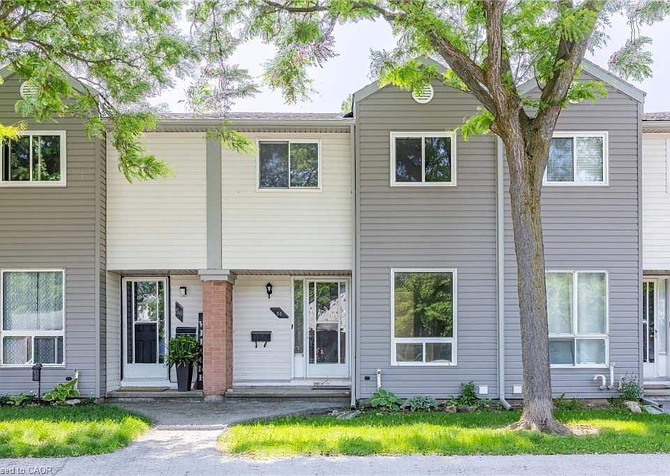 Nestled within a beautifully cared-for complex in Guelph's sought-after west end, this stylishly updated 3-bedroom, 1-bathroom townhouse effortlessly combines modern living with serene surroundings. Step inside to discover a bright, open-concept main level featuring contemporary laminate flooring and a welcoming living space that walks out to a private, tree-lined backyard—perfect for peaceful mornings or evening relaxation. The kitchen is both functional and sleek, offering white cabinetry, and generous counter space. An adjoining dining area provides a comfortable spot for family meals or entertaining guests. Upstairs, three spacious bedrooms and a tastefully updated 4-piece bathroom. Conveniently located near shopping hubs like Costco and Zehrs, excellent schools, and local parks, this move-in-ready home offers both lifestyle and location.