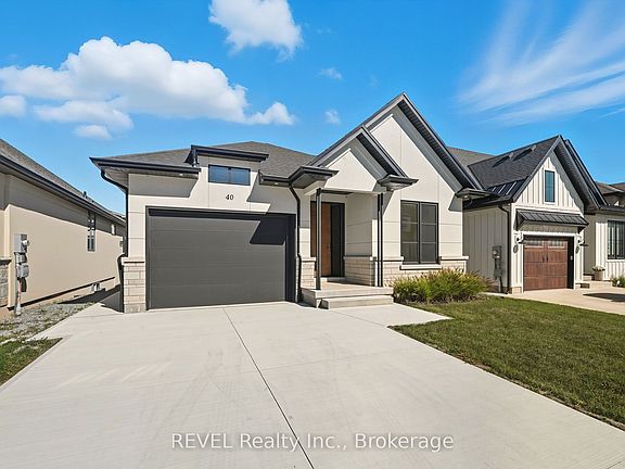 Welcome to this stunning custom-built bungalow in Thorold, designed with style, function, and comfort in mind. The open-concept layout highlights a chefs kitchen with custom cabinetry, painted glass backsplash, a striking quartz double waterfall island, and brand-new stainless steel appliances. An additional espresso bar with wine fridge off the dining area adds the perfect touch for entertaining. The bright living room features a sleek linear gas fireplace and oversized double patio doors (9x8) that flood the space with natural light and lead to a 16x12 wooden deck complete with privacy screening. The main floor offers two bedrooms, including a primary suite with a walk-in closet and a spa-like ensuite boasting a custom double vanity and large glass walk-in shower. A main 4-pc bathroom, mud/laundry room, and Italian tile with engineered hardwood flooring complete this level.The fully finished lower level expands your living space with two additional bedrooms with egress windows, a 3-pc bathroom, and a large recreation area, all finished with durable vinyl flooring. Additional features include battery-powered window coverings on the main floor, an attached single-car garage, and a double-wide driveway. Set in a prime location close to shopping, amenities, and with easy highway access, this home is within walking distance to scenic trails and Lake Gibson Conservation Park. A true blend of modern design and everyday convenience, move in and enjoy!
