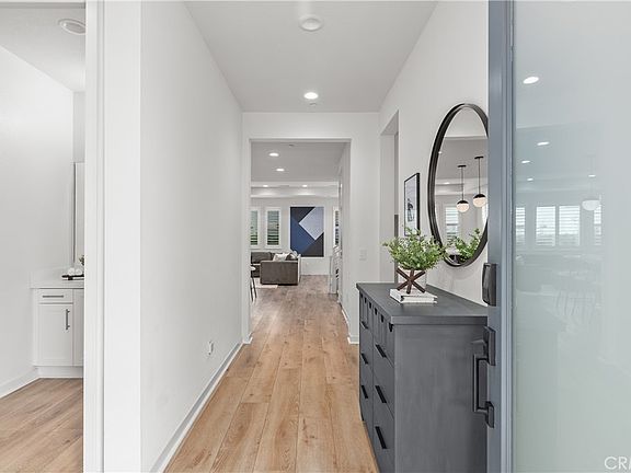 Welcome to 40 Jarano, a beautifully upgraded 4-bedroom, 3-bathroom home located in the award-winning community of Rancho Mission Viejo. Designed for both style and functionality, this residence offers a well-planned layout, quality finishes, and a seamless indoor-outdoor flow ideal for modern living. The entry sets the tone with a double-pane frosted glass front door, smart lock, and video doorbell that combine security with sleek curb appeal. Inside, the main level features luxury vinyl plank flooring, plantation shutters, Ecobee smart thermostats, and Lutron dimmers throughout. A full bedroom and bathroom on the first floor offer versatility for guests, remote work, or additional living space, while the adjacent laundry room includes a built-in drying rack and premium washer and dryer. The open-concept kitchen showcases white shaker cabinetry—some with soft-close functionality—quartz countertops, statement pendant lighting, and a Samsung Bespoke refrigerator. The dining area opens to the covered California Room and backyard through collapsible glass doors, creating effortless indoor-outdoor living. The living room is centered around a custom floating entertainment center that adds modern style and practical storage. Upstairs, the spacious primary suite includes dual vanities, an oversized soaking tub, a walk-in shower, and a large walk-in closet enhanced with motion-sensor lighting. A Toto heated bidet toilet seat brings added comfort. Two additional bedrooms and a full bathroom complete the upper level. The backyard is designed for low-maintenance enjoyment, with turf, mature privacy hedges, landscape lighting, sprinklers, and a four-seat Hot Springs Beam spa with an upgraded cover lift. The garage is outfitted with overhead and floor storage racks, motion-sensor lighting, and an EV charging outlet. Additional highlights include a whole-house water softener and conditioner, energy-efficient upgrades, and smart-home conveniences throughout. Set within one of South Orange County’s most desirable communities, 40 Jarano offers modern upgrades, thoughtful design, and an ideal location close to trails, parks, and resort-style amenities.