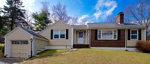 Expansive Ward One Ranch in private wooded setting. Large Eat In Kitchen opens to Dining Room with China Cabinets. The Living Room is bright and sunny with a wood burning fireplace. The Sunroom provides more living space ad opens to a new Trex deck. Three bedrooms and two baths plus a finished lower level makes this a wonderful family home of over 2000 square feet with a large secluded yard.