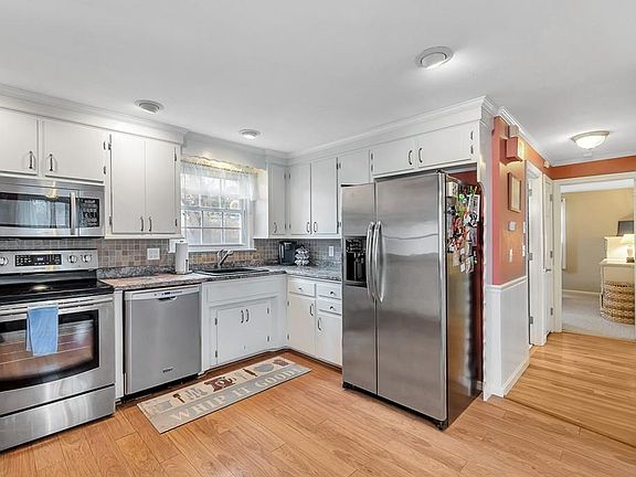 Tremendous, well maintained home on a quiet dead end street! This home boasts an updated kitchen with stainless steel appliances, tile back splash, wood laminate flooring, and is perfect for entertaining with the open floor plan to the dining room, big fire-placed living room with hardwood floors and a bay window, front to back master bedroom with his and her closets, updated baths, first floor bedroom, tons of natural light, newer windows, roof, hot water tank, and well pump, driveway was re-sealed last year, plenty of storage, house is wired for a generator, and so much more! If that's not enough there's a full finished basement that allows for more space to fit your needs. The good sized yard is perfect for the warmer weather to come and all your outdoor activities! Excellent location that allows easy access to highways, downtown, shopping, and everything else Dracut has to offer!