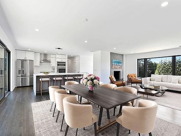 Steps from pristine Peconic Bay beach, close proximity to ocean beaches, as well as shops and restaurants in the heart of Southampton Village, this property is move-in ready and offers easy access to some of the world's top golf courses, including Sebonac, National, Shinnecock, and Southampton. Meticulously crafted with the latest design and construction techniques, this exceptional home offers energy efficiency, comfort, and durability.Through the front doors you're immediately greeted by a sun soaked entryway with chic lighting. The spacious, open main floor is complete with a chef's kitchen, dining area, and living room with a custom fireplace and walls of windows that allow for endless natural light. The kitchen boasts sleek cabinetry, waterfall island, high-end appliances, and bespoke finishes. Sliding glass doors off the kitchen lead to a roomy mahogany deck. There is a cozy den that has a wet bar, five bedrooms, four bathrooms, two laundry rooms, a mudroom, hardwood floors throughout, and a private balcony off the primary suite overlooking the lush grounds. Set on 0.6+/- acres, the backyard sanctuary is an entertainer's dream. Outdoor features include an impressive heated gunite pool, expansive patio, an outdoor living room hidden under the balcony, a two car garage and meticulously maintained grounds that offer privacy year-round. This is a luxurious oasis that provides a unique balance of nature and architecture for those seeking an elevated lifestyle.