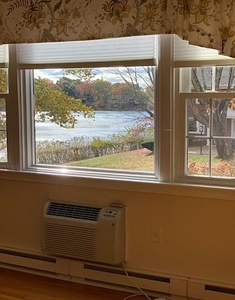 Sun filled rooms and gorgeous views of Wedge Pond await you in this brick townhouse in the heart of Winchester center. Convenient to commuter rail to Boston and all major routes. Walk to shops, restaurants, beach, tennis and Farmers Market. This condominium has been lovingly maintained and thoroughly updated. Hardwood floors throughout, cherry cabinets with granite and stainless steel appliances. Living room, dining room with bay window, galley kitchen and half bath on 1st fl; 2 bedrooms and full bath on 2nd fl.; 12 x 17 family room in lower level with cedar closet, laundry room with additional storage, cabinets, and closets, plus pull down attic for box storage. Enjoy your morning coffee on the patio as you watch the swans float by. Available now - no pets/no smoking/no exceptions. Good credit a must. Minimum of one year lease but can go longer. Landlord will pay for 2nd parking space, if needed. Hurry - don't miss this one!