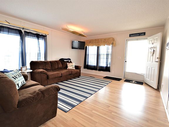 Enjoy YEAR-ROUND lake living in this affordable, immaculate home in the Hilltop Co-op on Jimmerson Lake! A lake themed decor scheme lends a relaxed, easy living vibe to the space - and all decor and furnishings to stay! Kitchen has plenty of space for all your needs, and all appliances are also included. Main bedroom en-suite includes private bathroom and his-and-hers closets! A second bedroom ensures plenty of privacy for owners while family and guests have a place to hang out. Head outside and take a short walk/ride to your designated new dock, to hop on the boat and enjoy a day of fun on the lake. Come back to relax on the landscaped private patio under the gazebo with outdoor bar and plenty of seating also included in the sale! New updates for the home include: landscaping 2021 with new outdoor lights; water softener and washer/dryer new in 2021; refrigerator, garbage disposal and sink new in 2020. Home comes fully furnished and even includes the coffee maker and TV!! Benefits of owning this home in Hilltop include: use of 80 acres owned by the co-op for recreation, including hunting, snowmobiling, and more! Also included is 1 of 8 outdoor boat storage spaces and extra parking in the grass directly across from this home. Option available for separate purchase is a 2020 Bennington Deluxe pontoon boat with 60 hours of use, speakers on seats and upgraded light package (see Pics). seller asking $45,000 for pontoon. Don't miss your opportunity to enjoy the beautiful peaceful views all winter long as well as the full lake season next year!