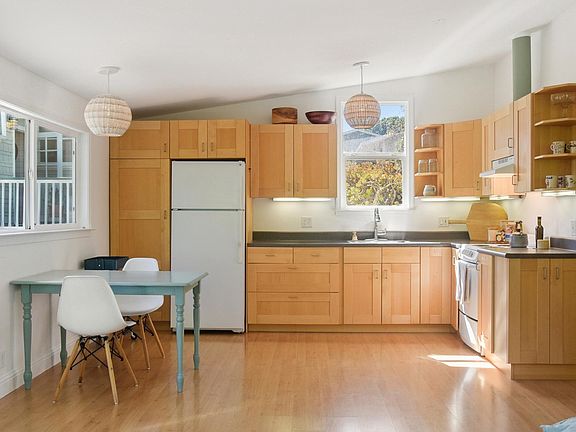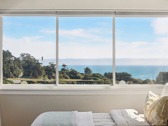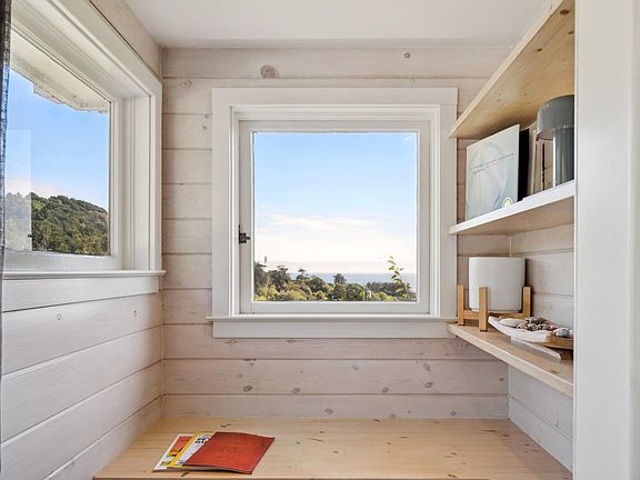 This sunlit Stinson Beach retreat is a rare find. The 3-bedroom, 2-bath main house and 1-bedroom, 1-bath guest cottage sit quietly on the coveted hillside, just minutes from the town and the Pacific. Designed in the style of a New England Cape, the home blends classic charm with modern touches. A stone fireplace anchors the living space, while the kitchen's breakfast bar and reading nook invite relaxed mornings. Decks, porches, and balconies frame sweeping views of ocean and hillsides. Bordering national park land, the property offers direct access to hiking trails and endless outdoor adventures. Every space feels calm, welcoming, and perfectly in tune with the natural beauty of the surroundings truly a uniquely special coastal escape.