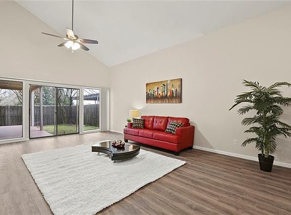Modern design and stylish interiors in this move-in ready 4 bedroom, 3 bath home. Some of the many updates include a stunning kitchen with recently installed cabinets, granite counters and ss appliances. The gorgeous living area offers 18 ft vaulted ceilings, stacked stone fireplace and wall of sliding doors leading to the outdoors. Two good sized bedrooms down with sliding doors and updated bath with granite counters. Gorgeous, water resistant wood look laminate floors flow throughout the living, dining and kitchen. Upstairs features a spacious master retreat with dual granite counters, two walk-in closets and vanity with a private patio. Excellent location within close proximity to Downtown and TCU.