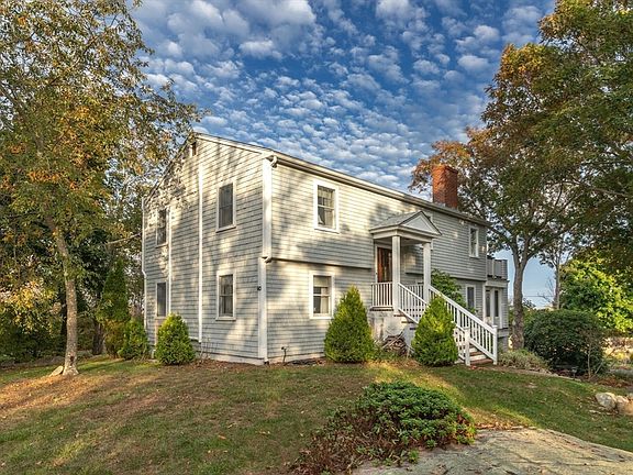 Welcome to this secluded 3-bedroom, 3-bath retreat in a tranquil Back Shore neighborhood, perfect for those who value privacy. Whether looking for a peaceful weekend getaway or a place to settle, this property offers it all. The top-floor living spaces are thoughtfully designed to capture distant ocean views, creating a serene backdrop for your daily life. Experience the perfect blend of comfort and nature in this idyllic sanctuary.The galley kitchen boasts stainless steel appliances and a dining area that opens to the cozy living room with a fireplace. Sliding glass doors from the living room and dining room open onto the expansive deck, perfect for entertaining or relaxing. The primary bedroom has a separate sitting area, fireplace, and glass doors open to a 3-season porch. Step outside to your private backyard with plenty of trees and plantings. Convenient to Good Harbor and Niles Beaches, shopping, and restaurants.