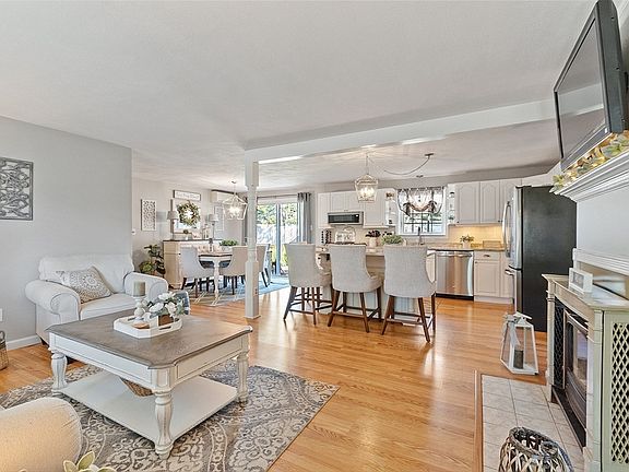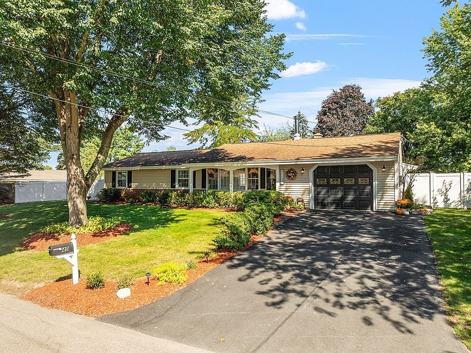 Welcome home to this beautifully landscaped & fully updated ranch tucked away in a quiet neighborhood just minutes from 495. Step inside to find an inviting open-concept living room with a wood burning fireplace & stylish kitchen featuring granite countertops, stainless appliances & an island with breakfast bar. The adjoining dining area offers sliders to the back patio & a spacious fenced yard, perfect for entertaining. A separate family room provides flexible living space for relaxing or family gatherings. Down the hall, you’ll find all three bedrooms & 1.5 baths, including a generously sized main bedroom with a private half bath & views of the backyard. Radiant heat warms the homen while mini-splits provide efficient heating & cooling options year round. With solar panels keeping electric costs low, a one-car garage & storage shed, this move-in ready home blends comfort & style. Be sure to check the highlights list for the full array of upgrades, far too many to list here!