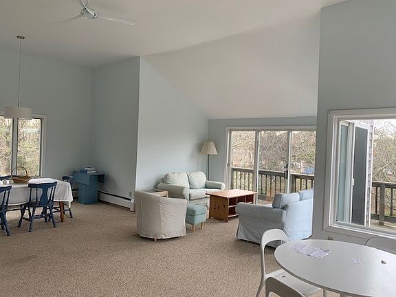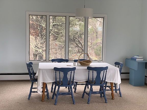 Partially furnished residence on a private wooded lot with views from the upstairs deck/balcony. This is an upside down house, kitchen, dining and Livingroom, as well as one bathroom are located on the second level and the three bedrooms are located on the first level with an additional bathroom. The property has a dishwasher, as well as washer and dryer, which are located in the walk out basement. One year lease with the possibility to extend. Owner may consider a small pet. Tenant is responsible for all utilities including oil , electric, water, Internet, rubbish removal. One year lease with the possibility for renewal. First and last month rent , as well as security deposit are due upon signing the rental agreement.