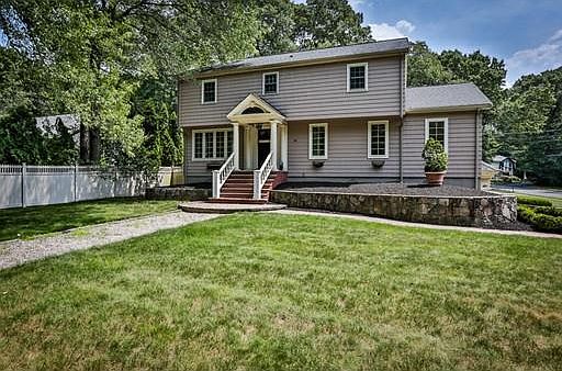 Great family garrison colonial on Stoneham / Melrose line. Corner lot, two-car end garage. Large landscaped yard. Many custom details. Four bedrooms and four full baths. Finished basement with family room, custom wainscoting, home office area w/ custom cabinetry & honed granite. Second office/homework area. Full bath on lower level. Large sunny kitchen w/ bright and open eating or sitting area, large family room, full bath on first floor. Second floor has 4 bedrooms, two baths. Includes all appliances. Whole house was painted, newly refinished hardwood floors throughout, new carpet in lower level. Sold as-is. Needs some cosmetic TLC, but incredible potential, and move-in ready. Large rear deck, built-in grill, paver walkways.