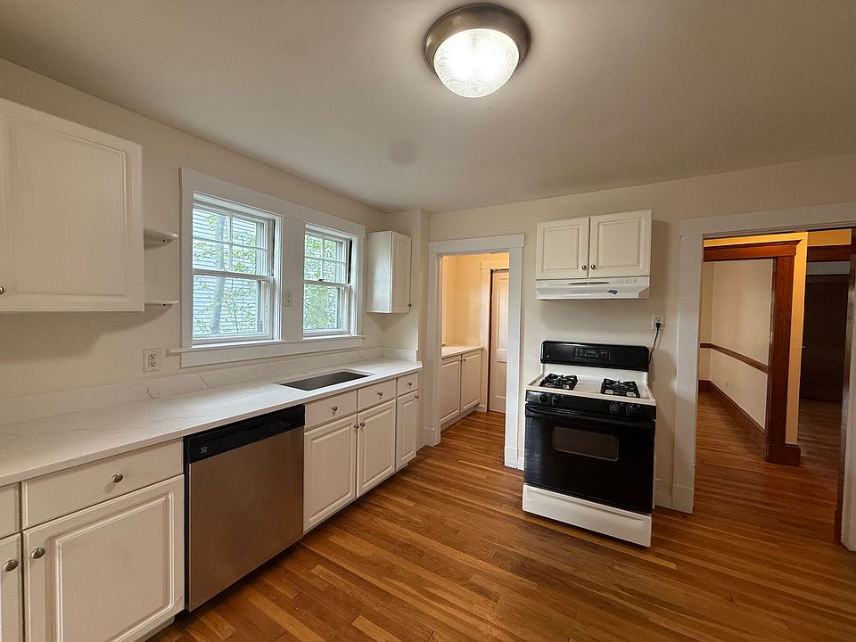 Large two bedroom apartment on the first floor of a two family home on a hill. This apartment has an updated kitchen with a dishwasher, hardwood floors, 2 decks, and free private laundry in the basement + storage. Pets are negotiable!