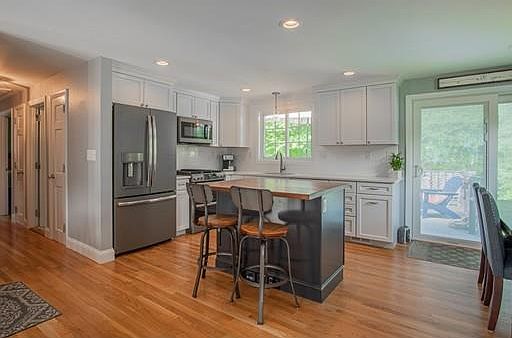 OPEN HOUSE CANCELED. Beautifully updated split on a corner lot in a highly desirable Billerica neighborhood. Open concept kitchen with slate appliances and butcher block island flows into the living room with hardwood floors throughout. 3 bedrooms and 1 bath round out first floor. Finished basement has a large family room, laundry room, and bonus room with walkout for multiple opportunities! Other updates include 2016 heating system, tankless water heater, french drain, and sprinkler system. Schedule your showing today!