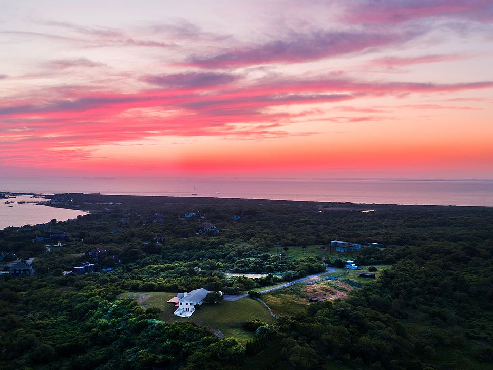 This extraordinary 15-acre Montauk estate offers the rare combination of breathtaking natural beauty, equestrian facilities, and unmatched privacy. Spread across three contiguous lots and situated at one of the highest elevations in Montauk, the property boasts 360-degree panoramic views of the ocean, bay, Lake Montauk, Block Island, and even Connecticut. Accessed by a private gated driveway-included in the sale-this secluded haven is bordered to the north by 900 acres of state preserve, ensuring peace, privacy, and uninterrupted vistas for generations to come. The estate's largest parcel features a charming 3-bedroom, 2-bathroom home, perfect as a primary residence or guest house. The two additional undeveloped lots offer a rare opportunity to design and build your own custom compound, equestrian expansion, or family retreat. Equestrian highlights include: Two expansive, fenced horse paddocks, each equipped with a water pump for troughs and open lean-to barns. A large, fenced training ring with its own lean-to barn and attached tack/feed room -Easy, direct access to scenic horse trails that lead into the 1,157-acre Montauk County Park, offering endless riding and hiking routes down to Oyster Pond and the bay. Beyond the county park, you'll find the 862-acre State Park, featuring campgrounds, fishing spots, the iconic lighthouse, and seasonal food offerings-all accessible by trail right from your property. Whether you're an equestrian enthusiast, nature lover, or someone seeking the ultimate in privacy and potential, this property delivers a rare lifestyle opportunity in one of the most beautiful corners of the East End.