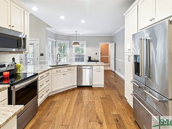 This stunning custom one-story brick home in a desirable Southbridge community has a split floor plan with distinctive southern architectural details and hardwood flooring throughout. 3 Bedrooms with Large Bonus Room/ 4th Bedroom, great room with soaring ceilings, wood burning fireplace & built-in bar/library. Luxurious owner's suite renovations feature custom infinity spa walk-in shower. Separate study/office & dining spaces are filled with natural light. Beautifully renovated bright open kitchen with a breakfast nook overlooking the expansive outdoor living area. Private .72 acre lot, oversized deck & paver patio perfect for entertaining or quiet evenings at home. Efficient HVAC with smart thermostat. Spray foam insulation in the enormous walk-in attic offers extra storage. Newer roof, 2 water heaters, 2 car garage with mini split hvac. Convenient to Gulfstream, downtown, Hyundai & more.