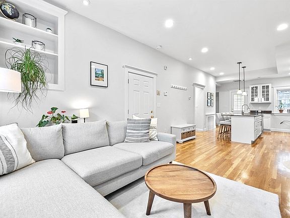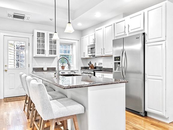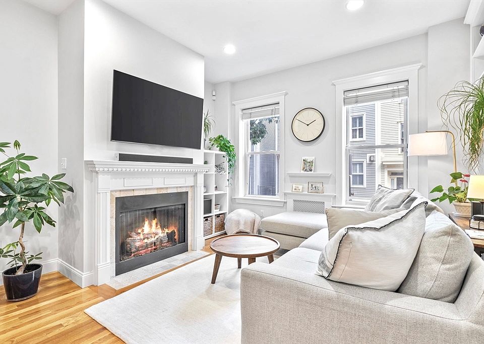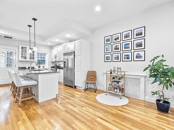 Brownstone 2 bed/2 bath with gigantic private patio! This idyllic unit provides elevated living with an open and inviting layout, high ceilings, and incredible natural light. Spacious living room with oversized windows and centered gas fireplace. Designer kitchen offers handcrafted cabinetry, SS appliances, center island with built-in breakfast bar, and adjoining formal dining area. Primary suite is out of a magazine! Featuring framed bed with custom walk-through closet. Meticulous en suite bath with full tile surround shower, marble double vanity, and aerated tub. Adjacent to primary is a bonus room that suits perfectly for home office or nursery. Generous guest bedroom with huge closet and dedicated full bath. Enjoy western sun and amazing privacy on your direct access patio with historic stonewall backdrop! Ample storage. AC. Hardwood throughout. A rare opportunity on beautiful tree-lined Mystic St.