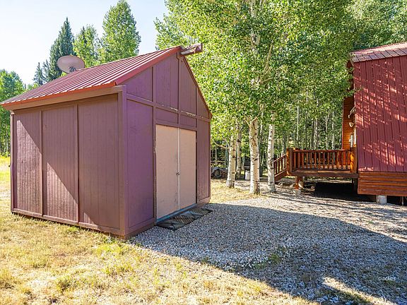 A Charming Cabin in Swains Creek. Nestled against an Aspen grove, sits a charming cabin ready for a new owner. The flat lot borders Dixie National Forest with meadow views from the covered front deck.Upon entering, you will find a spacious living, dining and kitchen area featuring acustom rock fireplace. A full bath with laundry completes the main floor. T&G pine walls create the cabin's cozy feel. Upstairs you will find two large bedrooms with custom lighting and ceiling fans and a 3/4 bath. The rear deck, with a retractable awning, beckons you for BBQs and star gazing. RV parking is adjacent to the cabin with full hookups. An outdoor storage shed is there for extra supplies. One owner for the last 26 years with pride of ownership in the maintenance. Newly renovated items include: 15 foundation piers; insulated metal/glass double front-entry doors, rear and side skirting/log siding and 10' x 24' rear decking. All wood recently stained and sealed, 22-ton of new decorative rock throughout, interconnected smoke alarms, new whole house water filter and septic tank recently pumped and inspected. Furnishings fit perfectly and are negotiable. Swains Creek comes with a proud sense of community with many local events.