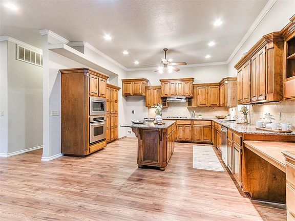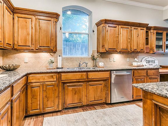 **Exterior Photos Coming Soon! Rained on photo day!** Spacious and elegant two story brick home located in the quiet, conveniently located Mesa Pointe within the Edmond school district. Offering 4 bedrooms (primary down, 3 up) 3.1 bathrooms, a study, bonus & 2 dining areas, this flexible floorplan provides impressive well kept spaces for you to make your own. Soaring 2 story ceilings in the entry & living room, a double sided fireplace, crown molding throughout and rich wood style flooring are a few of the attractive features you'll be drawn to. Many UPDATES throughout totaling around $50k!!! including: Both HVACS, hot water tank, fresh interior & exterior paint, whole house generator, luxury wood style flooring throughout main areas downstairs, 5 burner gas cooktop & microwave. In the downstairs of this fabulous floorplan you'll find the primary bedroom & bath, study, half bath and as you make your way up the beautiful staircase you're welcomed to a spacious landing with a loft style large bonus room, three additional bedrooms and 2 full baths. The attic has incredible storage space of approx 19'x14' with possibilities to finish the area out if you choose! Outside is a low maintenance oasis with partially enclosed pergola, more outdoor patio space and another grassy area with a very nice shed for your storage needs. This attractive neighborhood offers walking trails around a serene pond!