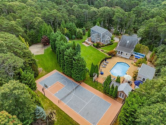 This exceptional listing combines three properties—40 Northwest, 35 Southeast, and 45 Southeast St.—totaling 2.6+ acres of curated grounds, mature trees, and thoughtful landscaping for unmatched privacy. Designed for both seclusion and entertaining, the compound features gardens, winding paths, and outdoor living spaces. The main home offers 3 BR/ 3 full & 2 half baths, an open layout, two outdoor kitchens, heated pool, hot tub, and multiple patios. An oversized garage with finished bonus space and half bath adds versatility. A 39,204 sq. ft. buildable lot with a multi-sport court provides recreation & privacy. The second residence is a renovated 3BR/3BA ranch with hardwood floors, private primary suite, finished lower level with kitchenette, and attached two-car garage. Outdoor living continues with decks, porches, and patios framed by mature plantings. A rare Cape Cod retreat blending privacy, entertainment, and opportunity.