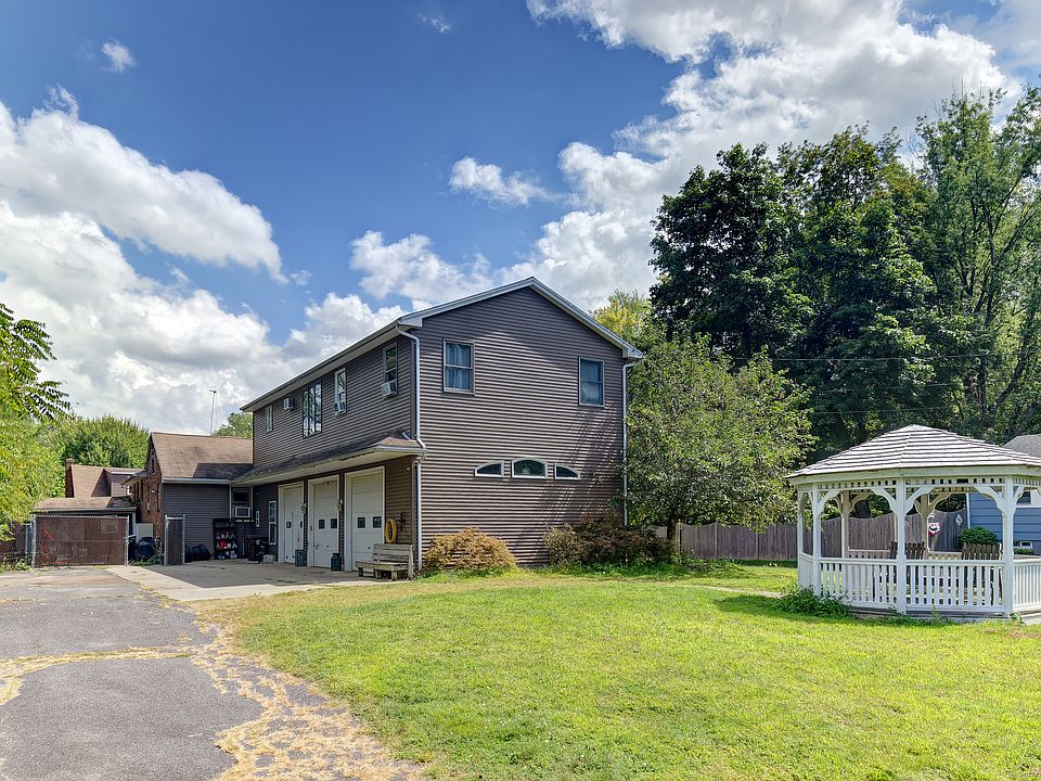 Use the property address to watch the video on YOUTUBE. This unique property is a dream for car enthusiasts and those seeking versatile living space. This home has 4 garage doors with the potential of storing 5 or more cars. 3 of the garage doors are 10x10 perfect for raised or tall vehicles. The garage is HEATED and is equipped with its own bathroom, making it an ideal setup for auto projects, hobbies, or a personal showroom. Includes a car lift! Inside, the home presents excellent potential for an in-law, with two separate kitchens and private entrances that provide flexibility and privacy. Outdoors, you'll find a huge outbuilding, perfect for use as a large workshop, storage space, or creative studio. Conveniently located just minutes from downtown Enfield and major highways, this property combines practicality, comfort, and rare amenities in one exceptional package.