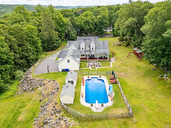 Step into your dream home where timeless craftsmanship meets resort-style living. This stunning custom-built residence blends elegance, comfort, and function. From the moment you arrive, you'll notice exceptional details: rich hardwood floors, custom millwork, and soaring 9-foot ceilings throughout. Designed for both grand entertaining and everyday living, the layout flows from a welcoming entry to a formal living room and spacious dining area. At the heart of the home is a chef's kitchen featuring a gas Viking stove, stainless steel appliances, granite countertops, and custom cabinetry-both beautiful and built to perform.The spectacular family room boasts cathedral ceilings, a dramatic stone fireplace, and sunlit windows leading to a covered patio, perfect for coffee mornings, brunch gatherings, or evening cocktails. The main-level primary suite is a luxurious retreat with a spa-like en suite bath and generous walk-in closet. Upstairs, you'll find three sizable bedrooms, a private home office, and a versatile recreation room ideal for movie nights, gaming, or creative projects. Step outside to your own private oasis: an expansive custom patio with a built-in fire pit, a 20x40 ft in-ground pool, and not one but two pool houses-ideal for entertaining or relaxing weekends.This home isn't just a place to live, it's a lifestyle upgrade. Come experience comfort, elegance, and everyday luxury. A five minute walk to the Old Bridge Sanctuary, a 25 acre park that offers hiking trails, kayaking and parking. Minutes to Lake Lillinonah and town center.