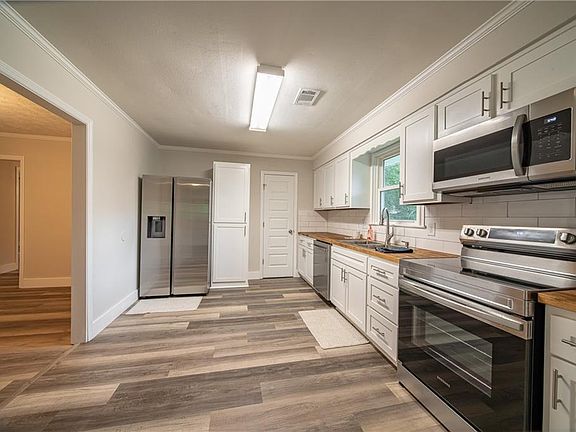 Come see this newly renovated 3 bedroom, 1 bathroom home on almost a half acre. Inside you will find luxury vinyl flooring, butcher block countertops, fresh paint, new appliances and everything is on one level. There is a living room, formal dining room and a bonus room that could be an office space, playroom or another dining space. There is plenty of room for parking and the unfinished basement around back could be a great workshop and excellent for storage. The location is perfect, just a few minutes from shopping and fast food, and just 20 minutes from Fort Moore.