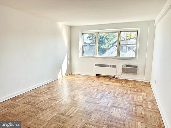 Who wouldn’t love moving into a freshly painted large 2 bed 2 bath condo with gorgeous refinished original solid wood parquet flooring throughout? This unit is superbly located near transportation, shopping, St Joe’s University, Bala Cynwyd Library, and parks. There is an on-site manager and you will love the lush grounds, the pool, workout room and easy parking. There are two doors into the unit. One door accesses the long foyer which has a whole wall of closets and flows into the very bright Southern facing living room. The other door from the hall goes to the updated kitchen with a large refrigerator, gas stove and opens to the dining area. The windows face East so you will have sunshine in the morning as you view the trees at your windows. From the living room, step in the hall which has a double closet, doorways to the primary bedroom, the 2nd bedroom and the hall bath. The washer/dryer are in the hall bath where there is a tub. The primary bedroom with a double closet is at the corner of the building facing East and South and full of light. The adjoining bathroom has a stall shower with new faucets. The 2nd bedroom has big windows overlooking lovely landscaping. The lower level of this building has a designated storage cage, a social room for meetings and get togethers as well as workout room and access to the pool area. This building has newer elevators and boilers for heating. There is brand new upgraded 100 AMP electrical service, outlets are now grounded, new lighting fixtures installed, also. The move in fee is $500, plus $100 for 4 hours and $750 deposit returnable after move in. The capital contribution is $1336. Garage space rental is $80 when available. Electric charge is added to the condo fee of $668/month. Only cats are permitted. This is a lovely place to live and very convenient.