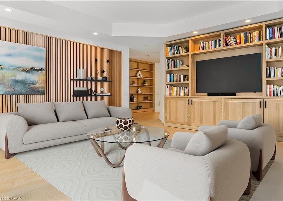 Located in Old Oakville, just steps from the GO station and Whole Foods, and a short stroll to boutique downtown shops, this 3-bedroom, 3.5-bath corner suite offers the perfect balance of urban convenience and peaceful neighborhood living. Nearly 3,000 sq ft of sunlight-filled space features wide plank white oak floors, a Chervin-crafted kitchen with new Miele appliances, and two private terraces for morning coffee or evening relaxation. A custom bookcase door reveals a hidden bonus room—ideal as a home office, screening room, or creative studio. The primary suite is a private retreat with its own terrace, sitting nook, walk-in closet, and spa-level marble ensuite. Two additional bedrooms with ensuites, full laundry with storage, and curated modern finishes complete the home. Building amenities include an indoor pool, fitness center, hobby room, party space, two premium parking spots, and two lockers—all within a calm, community-minded setting.