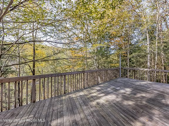 The .69-acre lot is tiered with a parking area above and the house below connected by a staircase. The home has a wood burning stove and a large deck facing the woods and lake below. The location is ideal for outdoor enthusiasts, with countless trails for hiking and biking nearby, as well as lakes and rivers for fishing, swimming and kayaking. The property is within easy reach of local gems like the Neversink River, Peekamoose Blue Hole and Slide Mountain, along with charming towns such as Livingston Manor, Ellenville and Mountaindale for dining, markets and cultural events. Just over 100 miles from the GWB, this property combines quiet seclusion with convenient access to the best of Sullivan County.